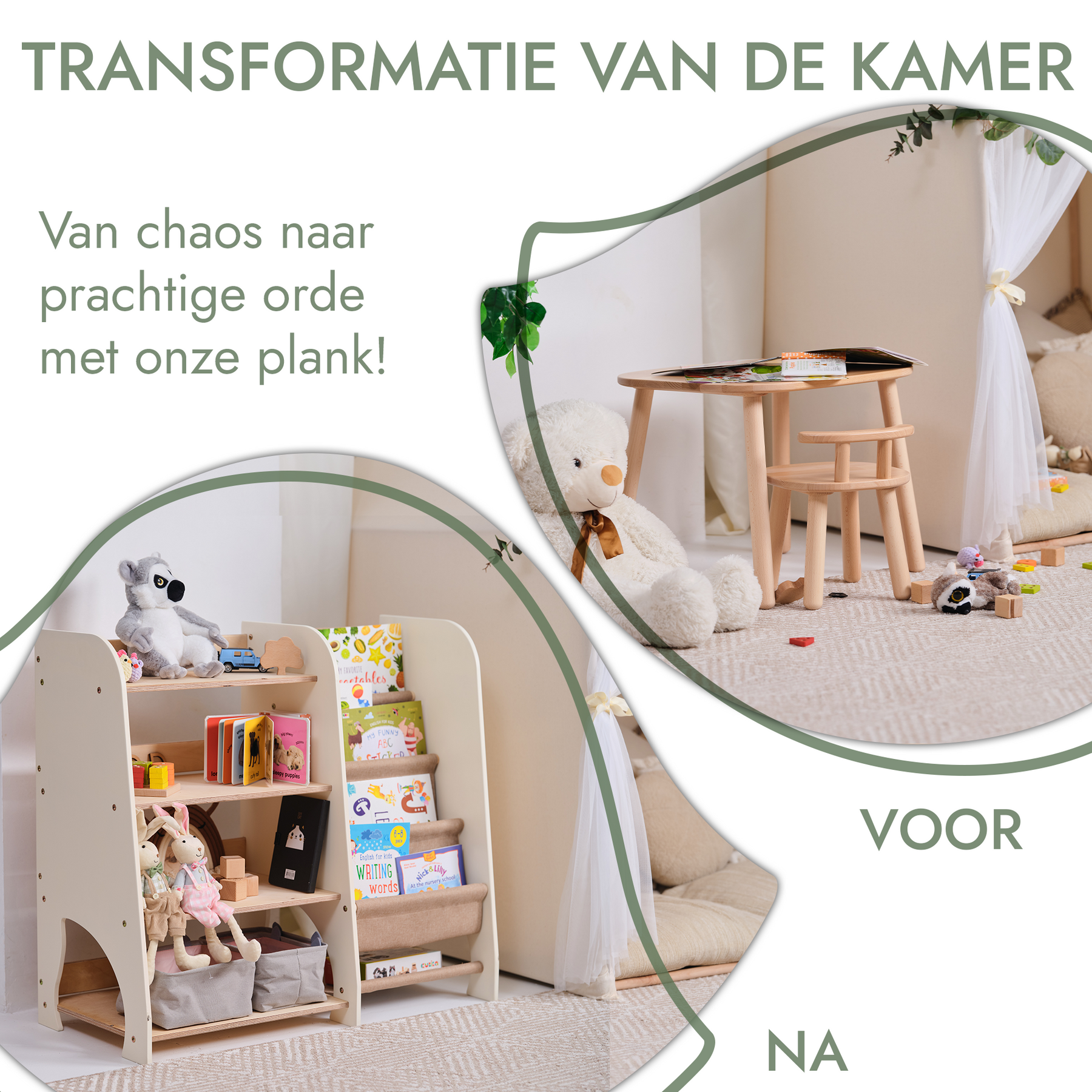 Houten Montessori Planken 2-in-1: Boekenplank & Speelgoed Planken